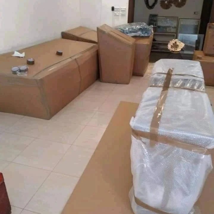 ويتم تغليف الاثاث باجود أنواع التغليف ( تغليف بورق مبطن باسفنج – وتغليف بنايلون. . . وغيرها )