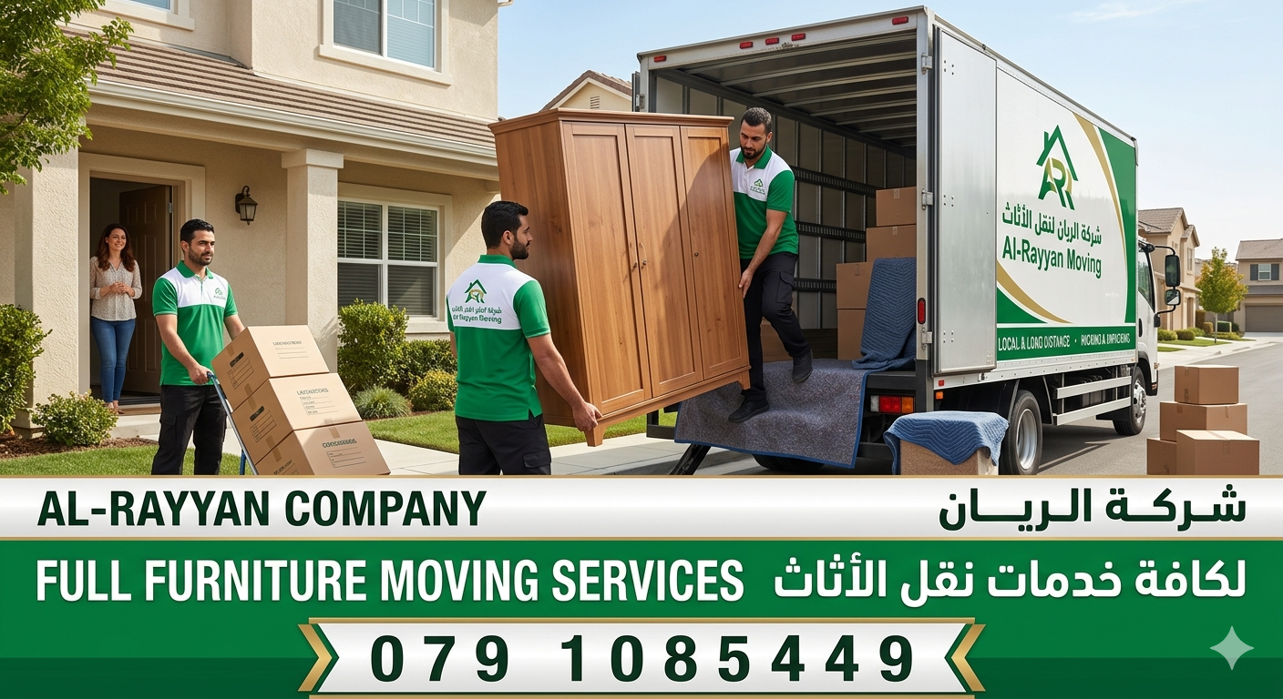 #شركة _الريان_لنقل الاثاث _ 0791085449 تقدم لكم أفضل الخدمات لتوفير الوقت والجهد والراحة والأمان لعملائها في مجال النقل داخل المملكة الأردنية، لأننها في مجال نقل الأثاث نعتمد علي فريق عمل مدرب من نجارون وفنيون وعمال مختصون فقط لنقل الاثاث بالاردن، ونعمل على تغليف الاثاث أثناء النقل لحمايتة من اي خدوش. ويكون النقل بسيارات حديثة مغلقة لعدم تعرض الأثاث للأتربة او الأمطار. خدمتنا مميزة. نقل وترحيل الأثاث للشقق والفيلات والمكاتب والمطاعم والفنادق والمجمعات السكنية والمصالح التجارية داخل المملكة الأردنية. بعماله مدربه في التعامل مع الاثاث والحفاظ عليه من الخدوش والضربات . ونجارون محترفون ومتخصصون في فك وتركيب جميع غرف النوم المستوردة والمحلية. وتغليف إلاثاث لضمان سلامه وصوله بأمان. ويتم تغليف الاثاث باجود أنواع التغليف ( تغليف بورق مبطن باسفنج – وتغليف بنايلون. . . وغيرها ) ويوجد لدينا فنيون لفك وتركيب البرادي والثريات والمكيفات والستالايت وغيرها من الاجهزة الكهربائية ومستلزمات المنزل. وتتم عملية نقل إلاثاث باحدث الاساليب وبسيارات حديثة مخصصة لنقل الاثاث فقط، وبأحجام مختلفة تبدا من ديانة مقاس 3،5 متر وحتي 5،00 متر وسيارات 7,50 متر LB. بأقل الأسعار والتزام بالمواعيد خدمتنا طوال ايام الأسبوع ونعمل ايام الأجازات والعطلات الرسمية للاستفسار الاتصال بنا في اي وقت./0791085449 اطيب التحيات شركة /الريانإدارة /ابو ريان